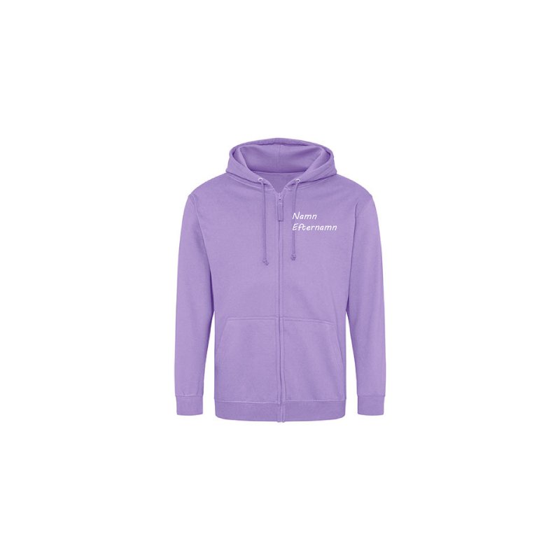 Skön ziphood med dubbel luva och ficka på magen, fleecad insida och ganska rymliga storlekar. Stort svart tryck över ryggen, ev. namntryck på hjärtat.